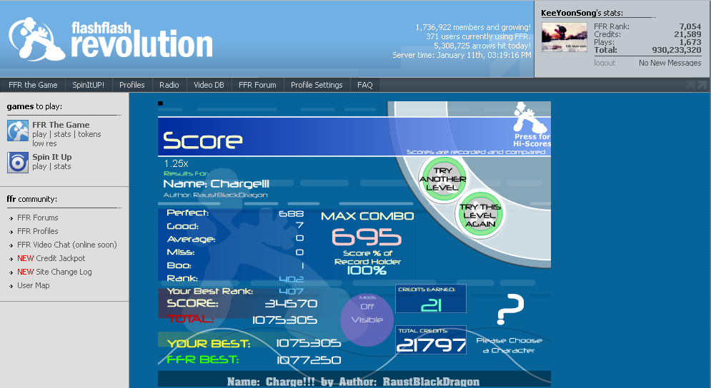 ![]() 1st Place D3 SocoNhydro's Tournament of Eternity! (June) 3rd Place (x1 Speed) D2 FFR Classics Short and Sweet Tourney 1st Place D1 Cold Kitten and Xx{Midnight}xX Present: The Tournament Of Immortality 2nd Place D1 xBBx's and T-Force's Short and Sweet Tourney 2nd Place D1 King's and Takedown's Tournament! |