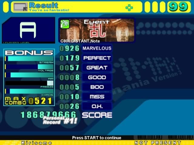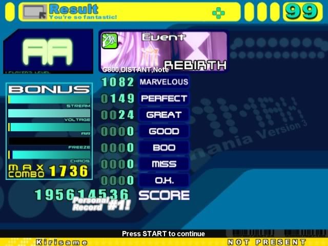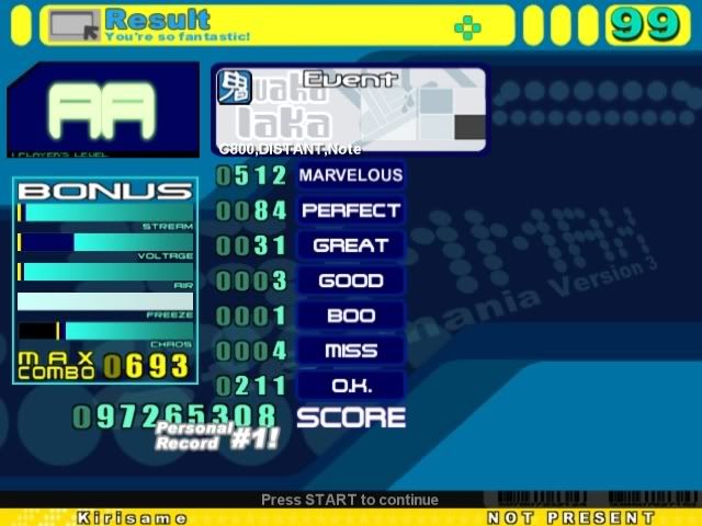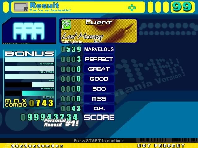 ![]() Sightread, I think it's decent for me ![]() It's always some good/miss/boo on a trill ;_; ![]() Don't like the beginning 32nd/64th crap. Good MA on this for me ![]() First FC out of about 4 total plays, greats came from left hand :/ ![]() Second FC, now to just work on accuracy >_>