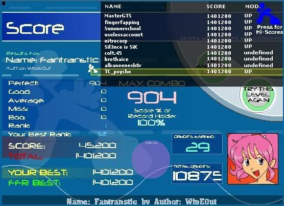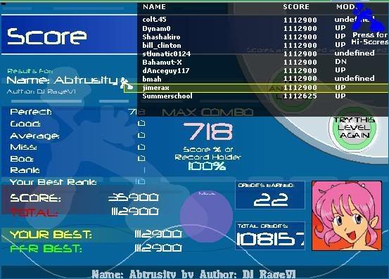 ![]() {BLAZE} ![]() Activity Unbroken AAA ![]() Computer Dreams AAA ![]() Dance 2 This AAA ![]() Dazzling Destiny FC ![]() Dazzling Soul FC ![]() Delirium FC ![]() Divinity FC ![]() Exciting Hyper Highspeed Star V2 FC ![]() Falling into You AAA ![]() Trip to the Moon AAA ![]() For who I am AAA ![]() From Mount Chorus FC ![]() Gaussian Blur 3 FC ![]() GoGoGo Power Rangers! ![]() Halcyon AAA ![]() Harry Potter Techno Remix ![]() Life Goes on AAA ![]() Life Goes on Black Flag ![]() Love you Anymore AAA ![]() LovelyLovelyLovely Fc ![]() Max Forever 2050 Combo ![]() Moonlight Sonata AAA ![]() Mother of God FC ![]() PANTS ![]() Seattles Finest AAA ![]() Sonic 1 Final Zone AAA ![]() Soul Shift FFR Edit AAA ![]() Spontanious Hydroxide AAA ![]() Stay with me (Unlikely) AAA ![]() Super Mario 8 Bit AAA ![]() Switchback FFR Edit AAA ![]() Takecore of Yourself FC ![]() Takecore of yourself FC Better ![]() The Games We Played Part 2 FC ![]() The Games We Played Part 3 ![]() The Brain of the Moon FC ![]() This beat is for tha Streets! AAA ![]() This Song is for the Nihojins ![]() Unknown Girl (My very first try) ![]() Unknown Girl FC ![]() Victims and Martyrs FC ![]() Z FC ![]() Wintergreen Cheats 1 ![]() Wintergreen Cheats 2 ![]() ![]() Last edited by Godnick; 06-24-2007 at 06:26 PM.. |