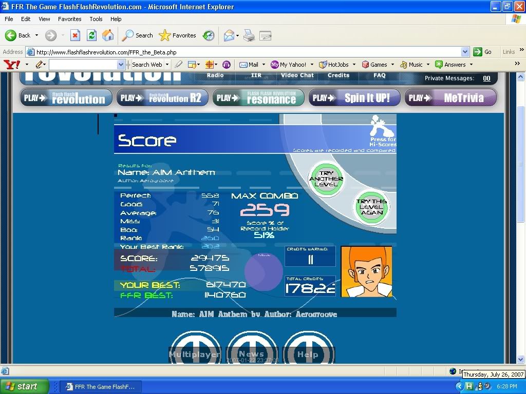 Submit your Score IN THIS THREAD by SS form by Sunday, July 28th, 2007 before 11:59:59 PM (FFR TIME)