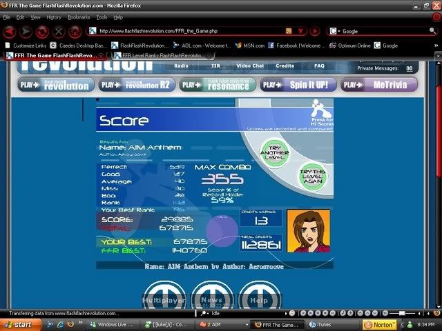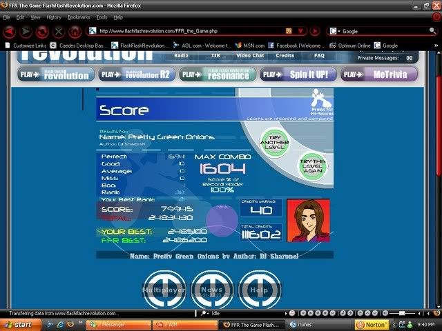 dont laugh.....i suck at this song...i lost...ill submit TB anyways...but ill keep trying...and sry i forgot to take a screenshot. I hate the beggining of this song. I get everything in the begginging. So hopefully i get the beggining down nd then i will have a chance to stay in this tourney.