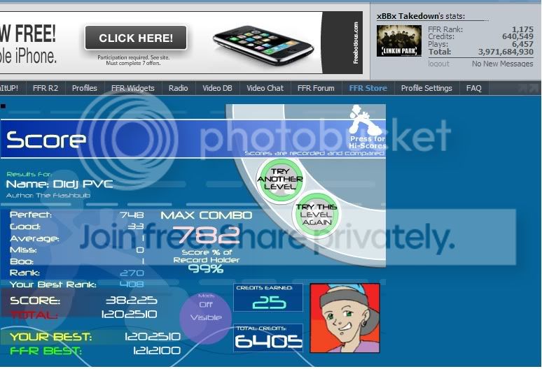 Whatever you can post, MrRubix can mock, and whatever this guy posts, you can mock, or choose not to. Who cares about your opinion anyways? Best case; equally many caring about his scores. Not like more than 3 people would actually view a "i did omfginsane on Reality" thread either.. OT Congratulations on improving, I haven't really gained anything from FFR the last month, other than a ton of 2-1 goods...
