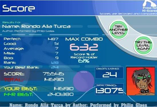 These are all first attempts on songs after not playing FFR since the start of december. I could probably do better on all of them if I kept playing, but was only having a laugh.