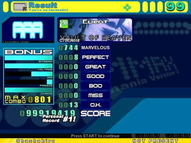 I mean yeah FC is very nice but the PA is holy **** bad I mean I can destroy that score and I can't FC, I can't even MA that damn file. So yeah. But gj on the fc anyway ![]() Oh and Delirium is a thousand times better than Vault of Heaven so good job on that. I still haven't SDP'd Delirium heavy so you beat me! EDIT: Maybe I should mention I have pretty much the same score on oni as heavy :P I never play heavy XD