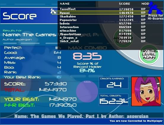 the jacks in this file are a pain in the ass to combo consistently.... I'll get the FC eventually. 1101 was from the start up until some weird triple 8 jack with a jump in the middle.