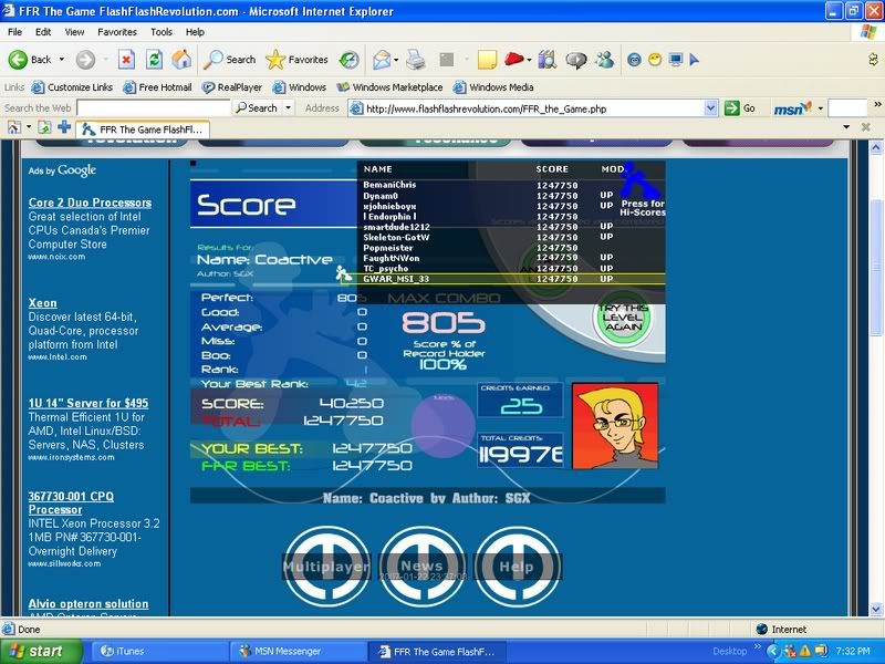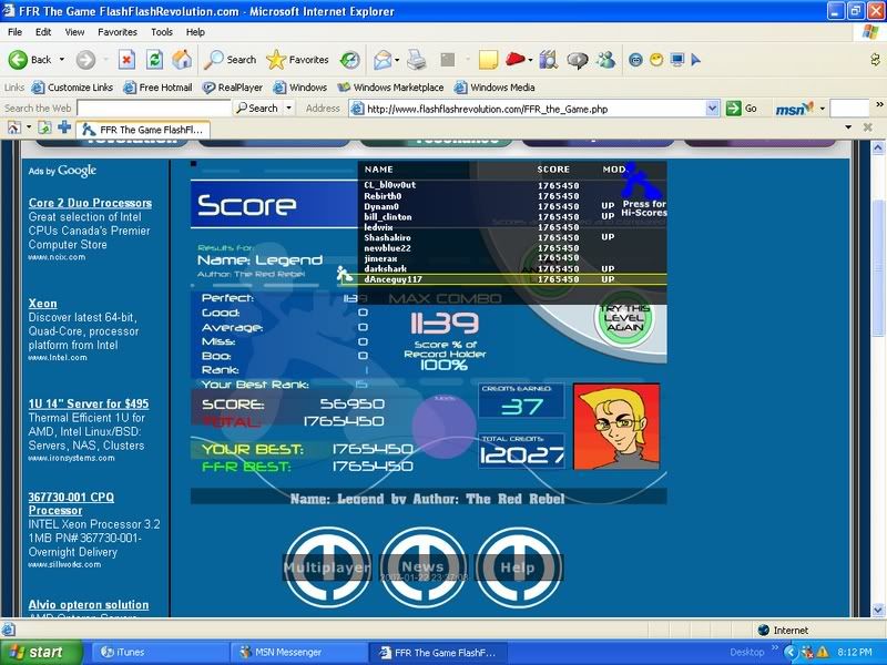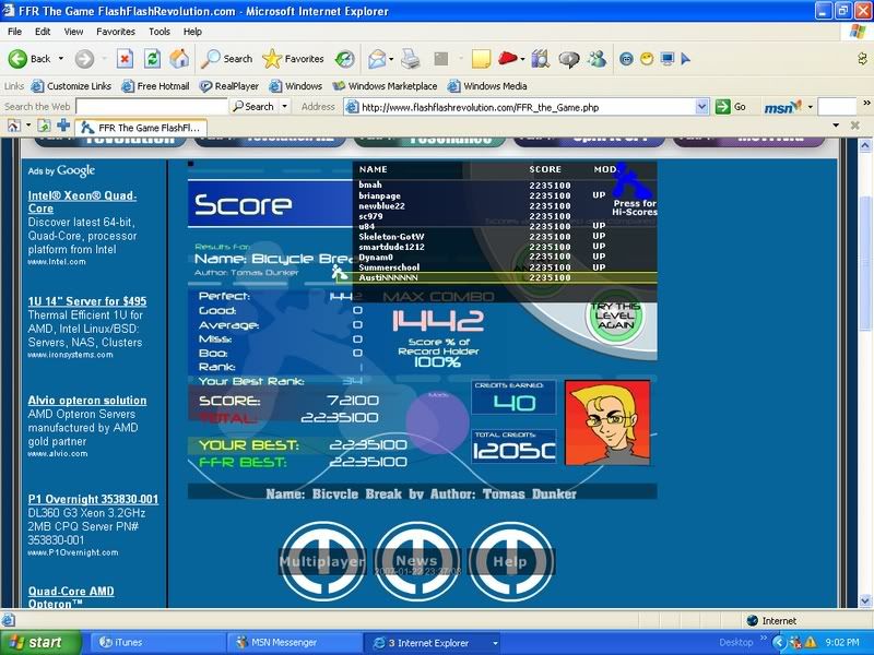 _____________________________________________ AAA - 189 Level rank Average Level - ? Best legit. FC - Runnymorning (SGX Mix) ITG Overall % - 97.60(not updating anymore) ___________________________________ Winner of HammyMcSquirrel's tournament Winner of rshadow8888's tournament Winner of travman301's tournament Winner of Colt.45's tournament Last edited by newblue22; 07-1-2007 at 10:15 PM.. |