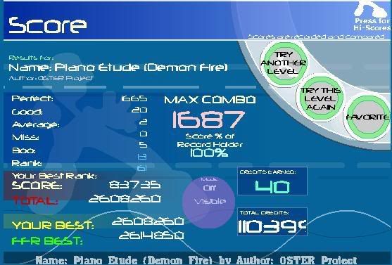 That Runny is verrrrry nice. Etude can be a little better, but like you said, you havent had time to whore it. As for Pants, I played that the day I unlocked it and only play it if I feel like pissing myself off, so I cant really make an accurate gauge of that score's quality. I'm sure its good though, what with being a Guru FC and all.