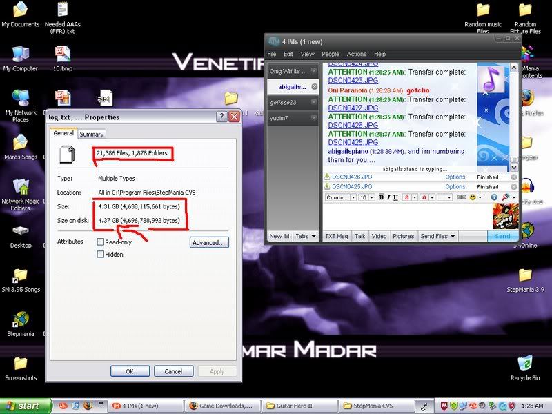 Blargh, only two gigs on this computer--I had over 5 gigs of songs on the horrid Windows ME I used to play SM on. (Yes, I'm always behind on times. Everyone had XP while I had ME, and now everyone has DSL while I have dial-up.)